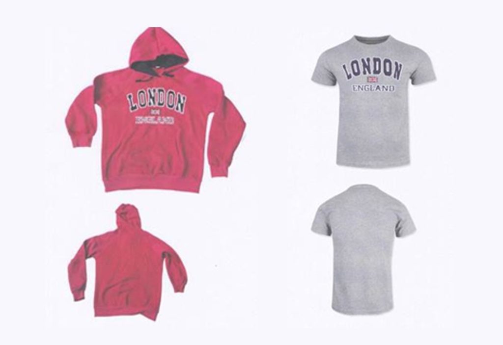 (ii) a poor-quality image of a red hoody said to bear the same “London + Flag + England” logo and said to have been on the website of a London tourist outlet, Lambert Souvenirs, in March 2008: