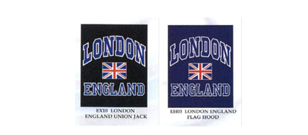 1. the Urban Attitude “London+Flag+England” logo was identical to that in the Hoody Design;